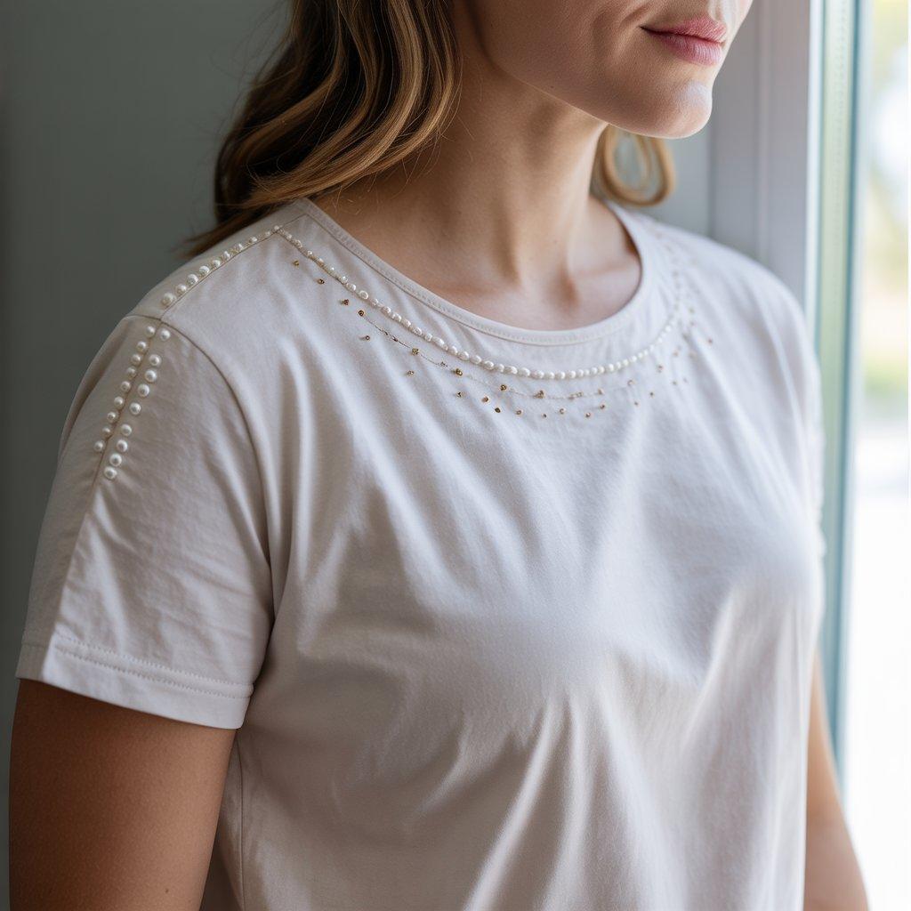 Small details like buttons, beads, or simple decorations can change the look of a plain T-shirt without making it feel heavy. These details are usually placed near the neckline, shoulders, or sleeves.