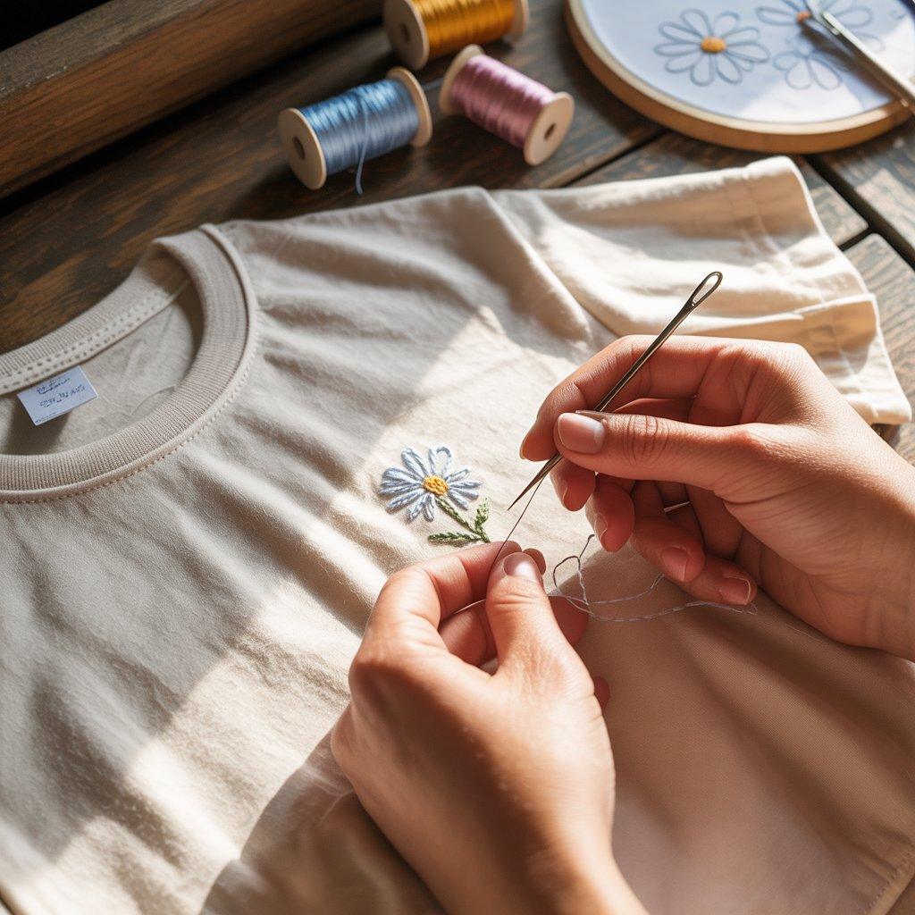 Embroidery may look difficult, but basic stitches are easy to learn. A small embroidered detail can make a plain T-shirt feel more thoughtful and personal. Many people choose small flowers, initials, or tiny shapes near the chest or sleeve.