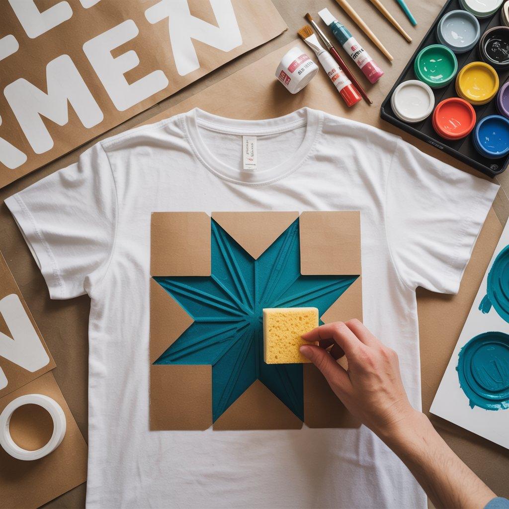 You can buy ready-made stencils or create your own using thick paper or plastic. Place the stencil on the T-shirt and secure it so it does not move. Use fabric paint and a sponge or brush to gently apply color inside the shape. Avoid using too much paint at once because it can spread outside the edges.