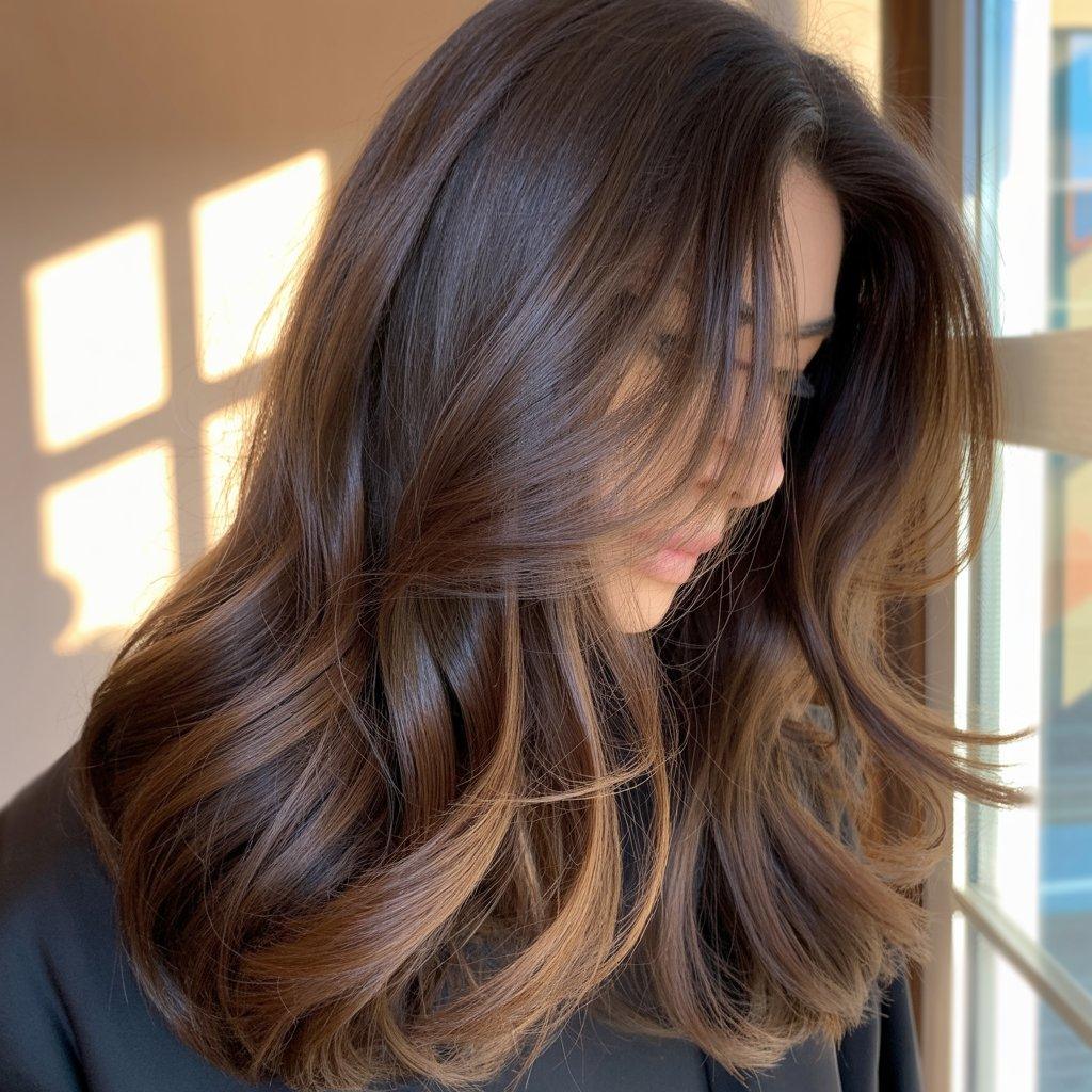 Balayage is one of the most flexible ways to add dimension to dark hair. Instead of completely changing your base color, it works by introducing softer tones that blend naturally into the hair. The result often looks more natural than traditional highlights because the color is painted by hand and placed exactly where it will catch the light.
