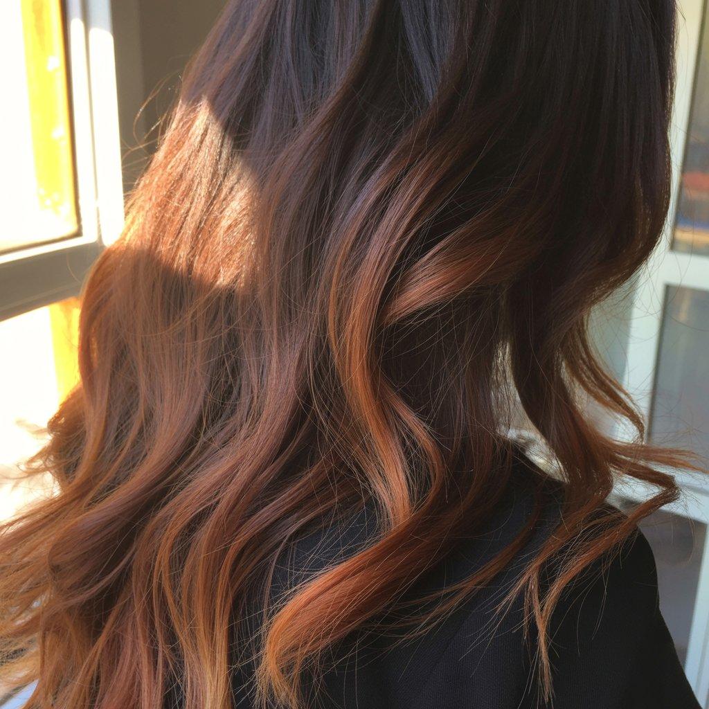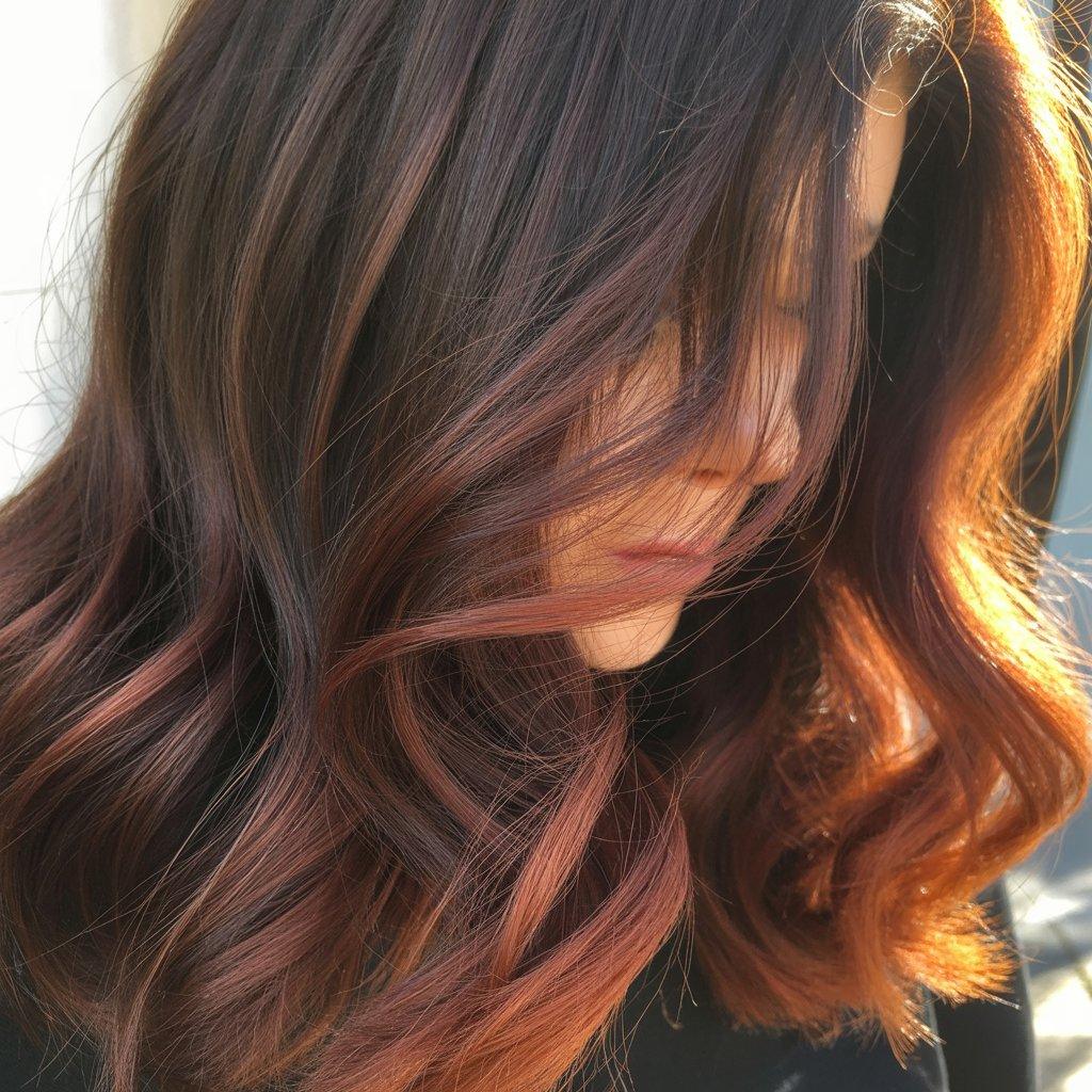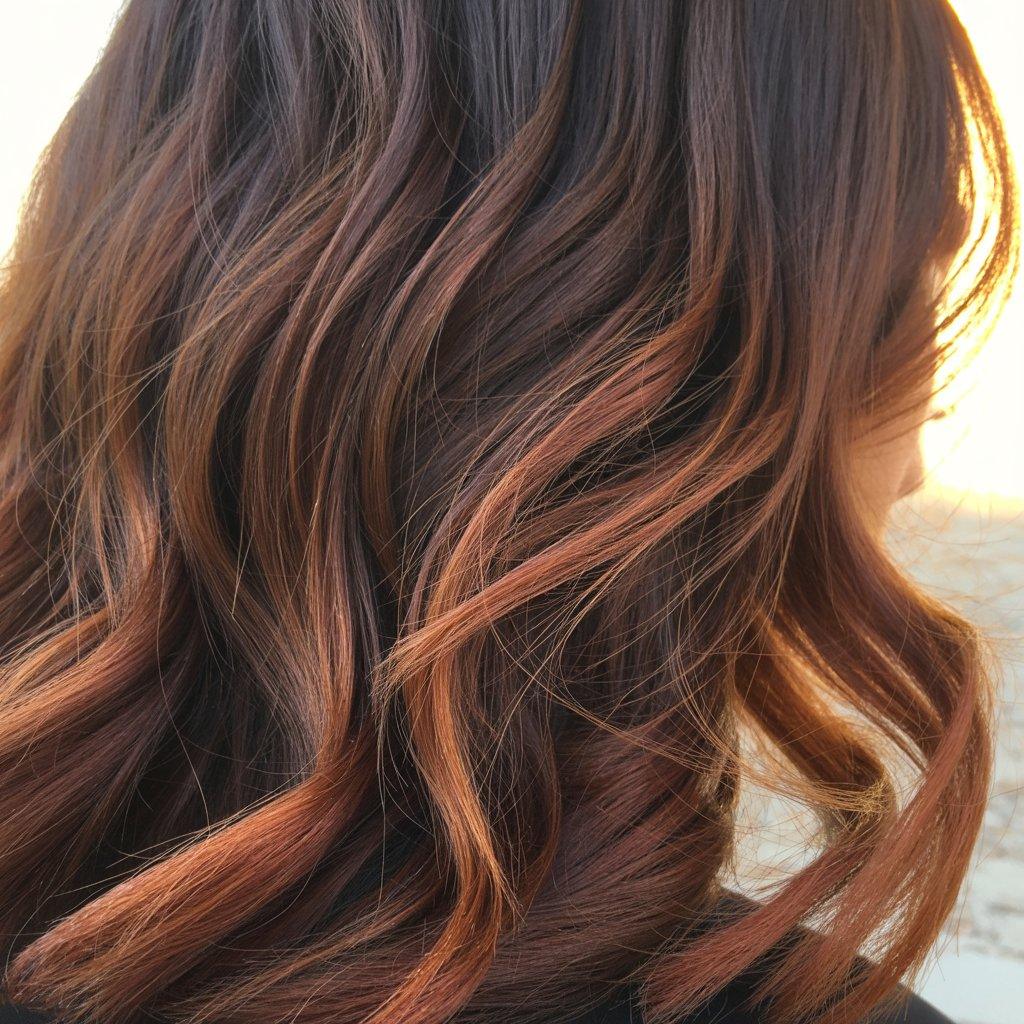 One thing I’ve seen with copper balayage is how much it changes depending on the lighting. Indoors the hair still looks dark, but outside the copper tones start to shine softly. That shift gives the color a lively and dimensional feel.