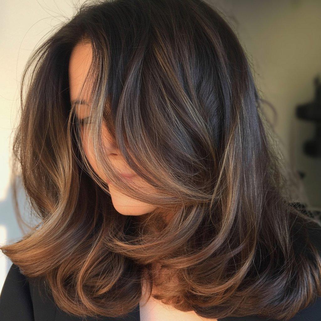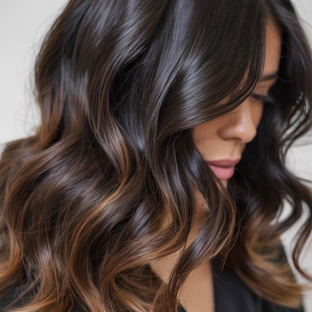 The key is keeping the highlights fine and blended. Thick streaks can look harsh on very dark hair, while softer hand-painted pieces look more natural. When styled with waves or layers, the lighter espresso tones show up even more.