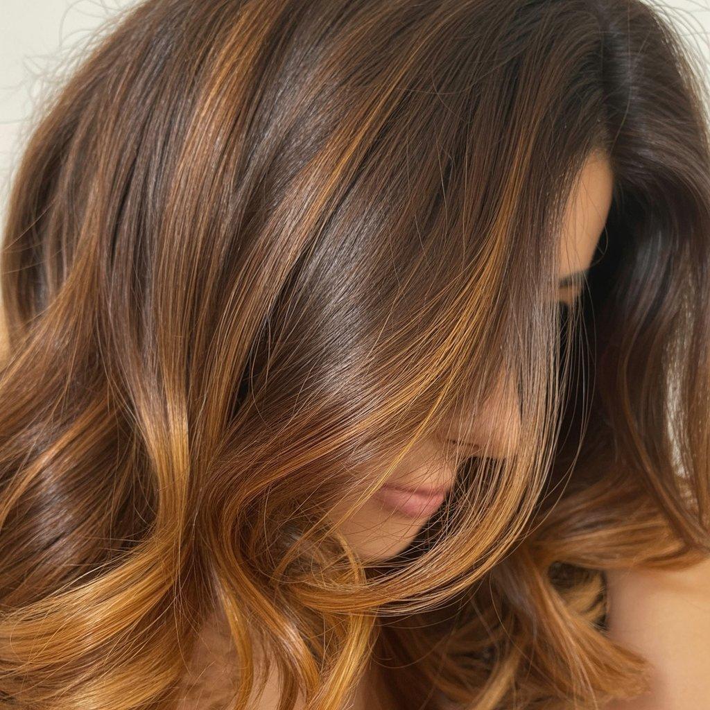 Maple brown balayage adds a gentle warmth that sits somewhere between caramel and chestnut. The tone is slightly golden but still deep enough to blend nicely with dark hair.