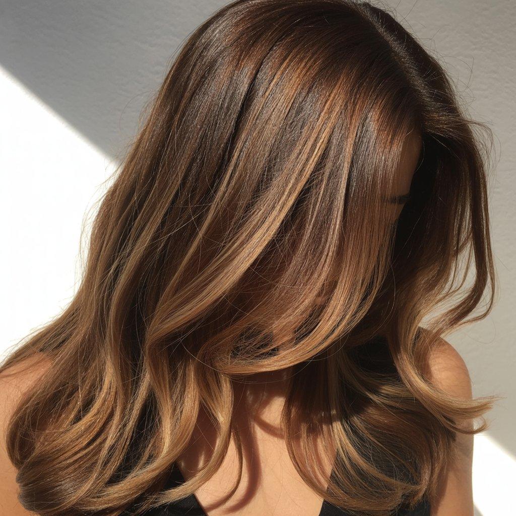 This balayage style focuses on subtle color variation rather than brightness. Stylists often paint walnut tones lightly through the mid-lengths and outer layers of the hair. The goal is to create movement in the color without making the highlights stand out too strongly.