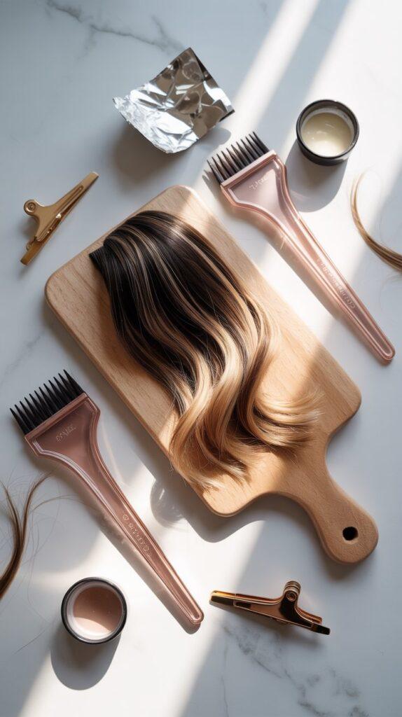 If you’re planning to try balayage on dark hair at home, having the right tools makes the process much easier. A balayage board, tint brush, and sectioning clips help you apply color more evenly and keep the highlights looking natural instead of patchy.