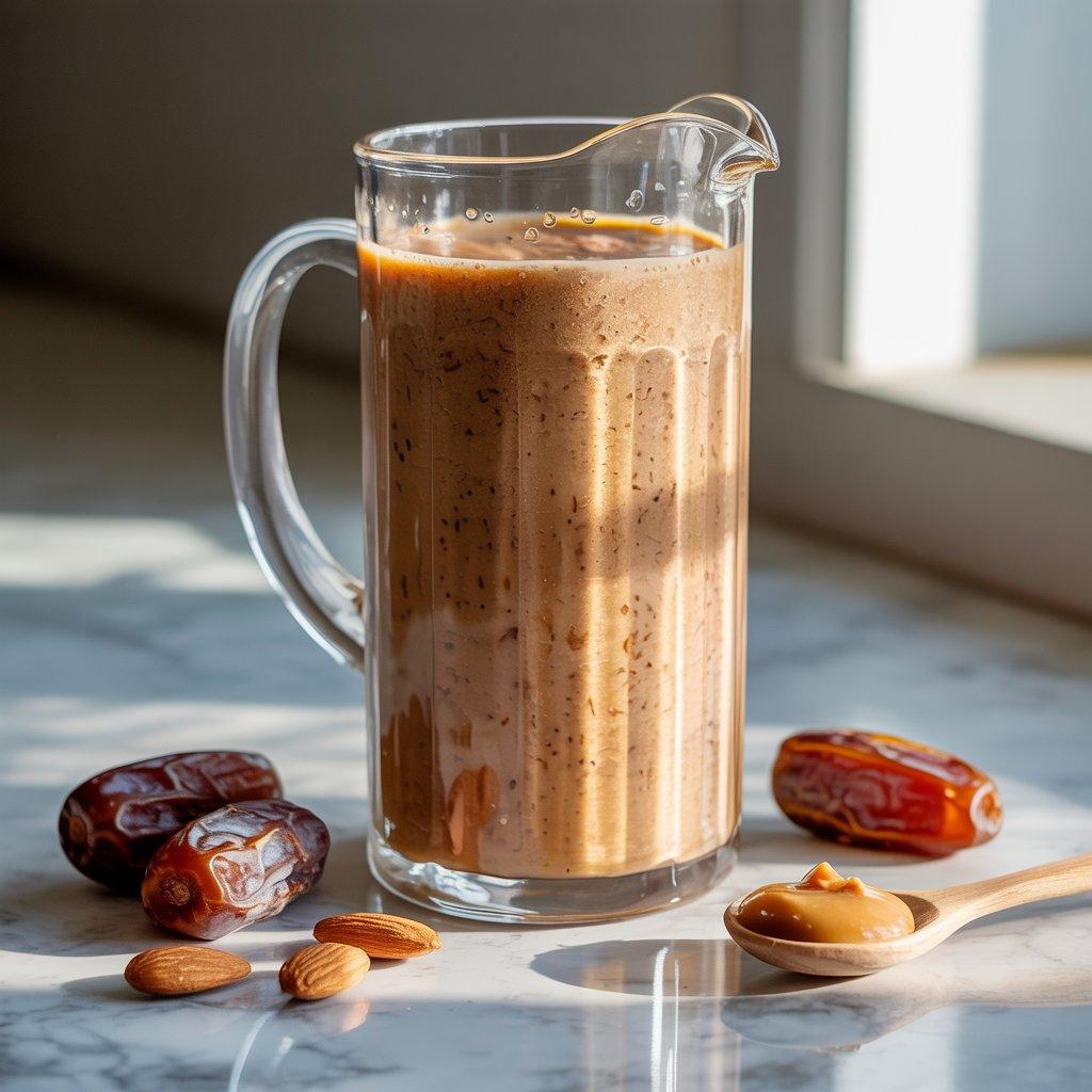 Dates provide quick but natural energy, while almonds add fats and protein to slow things down. I use one or two dates, almond butter, milk, and a pinch of salt. The result is smooth, slightly sweet, and very satisfying.