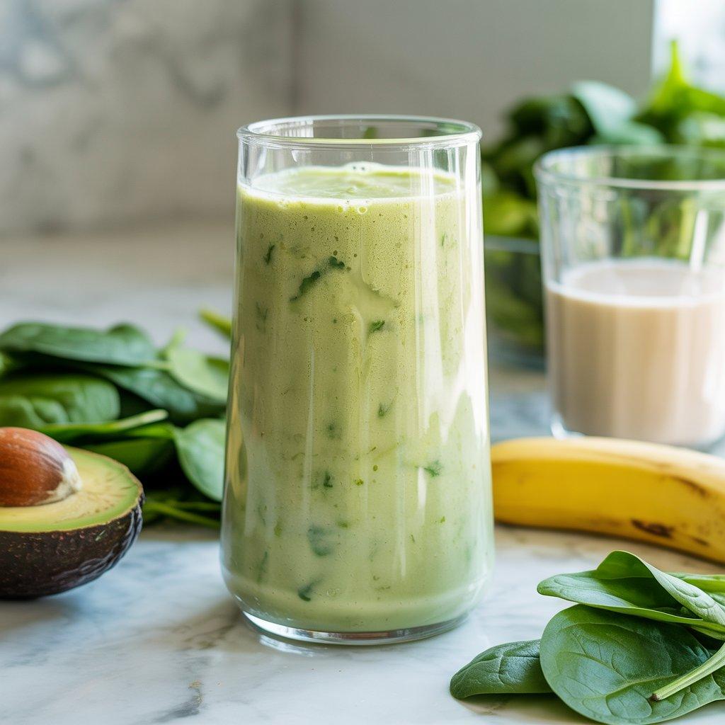 This smoothie focuses more on healthy fats than sweetness. Avocado provides slow-burning energy that helps prevent that drained feeling later in the day. I pair it with spinach for minerals and a banana to keep the taste balanced.