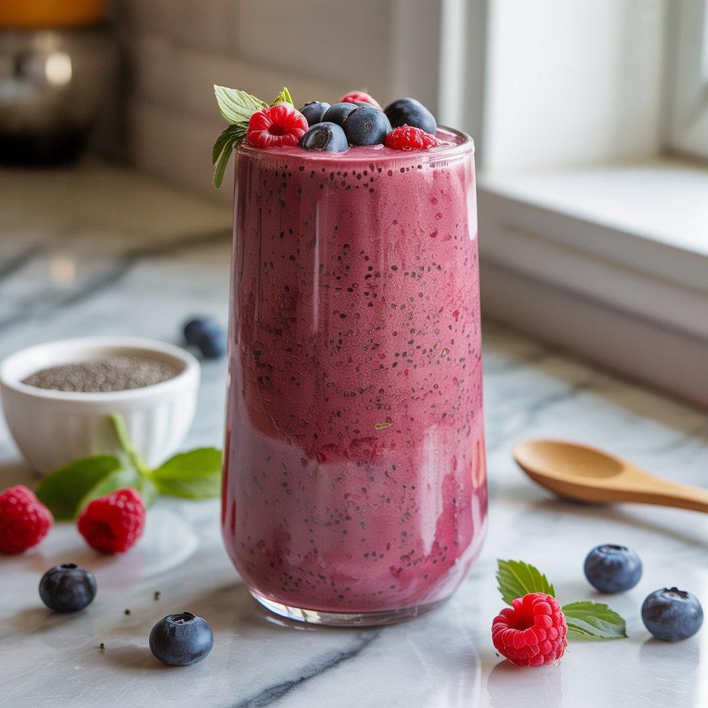 This works well on busy days when you need fuel that won’t wear off quickly. The seeds add fiber and healthy fats, which help prevent energy dips. I’ve found this smoothie helpful when fatigue shows up as constant hunger or low endurance. It’s not flashy, but it does its job. If mornings are rushed, this is an easy way to get a balanced meal without skipping food altogether.