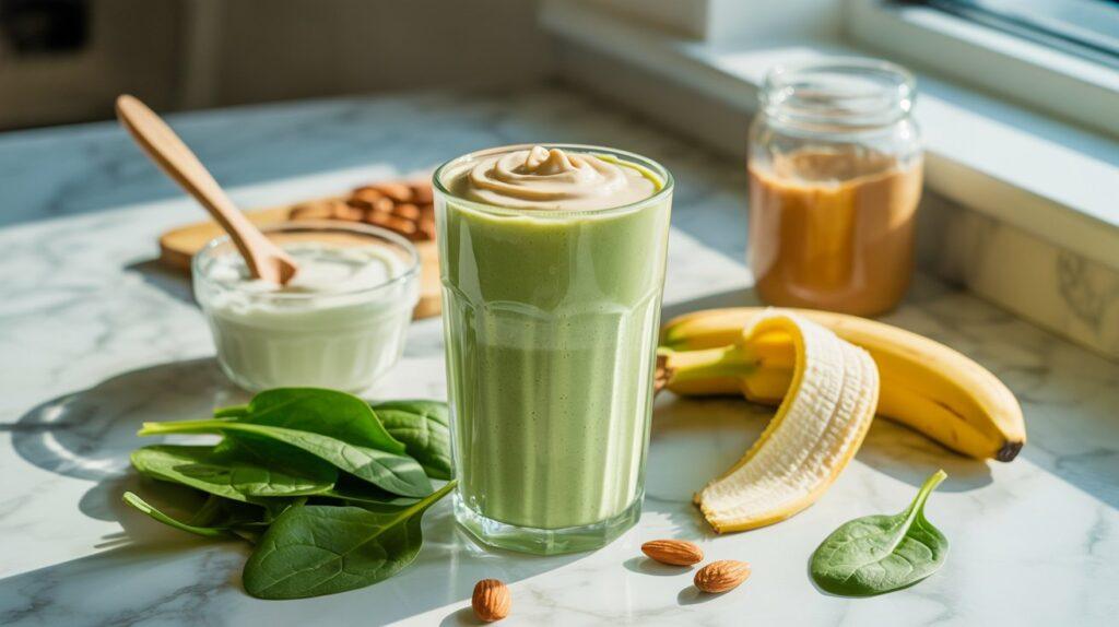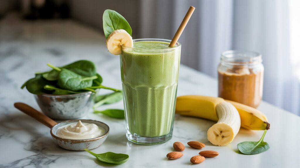 This smoothie became a regular for me when I realized I wasn’t eating enough greens during the day. Spinach is mild, easy to blend, and packed with nutrients that support energy without being heavy. I pair it with a banana for natural sweetness and potassium, which helps with muscle fatigue. Greek yogurt adds protein to keep blood sugar steady, while a tablespoon of almond butter brings healthy fats that help the energy last longer.