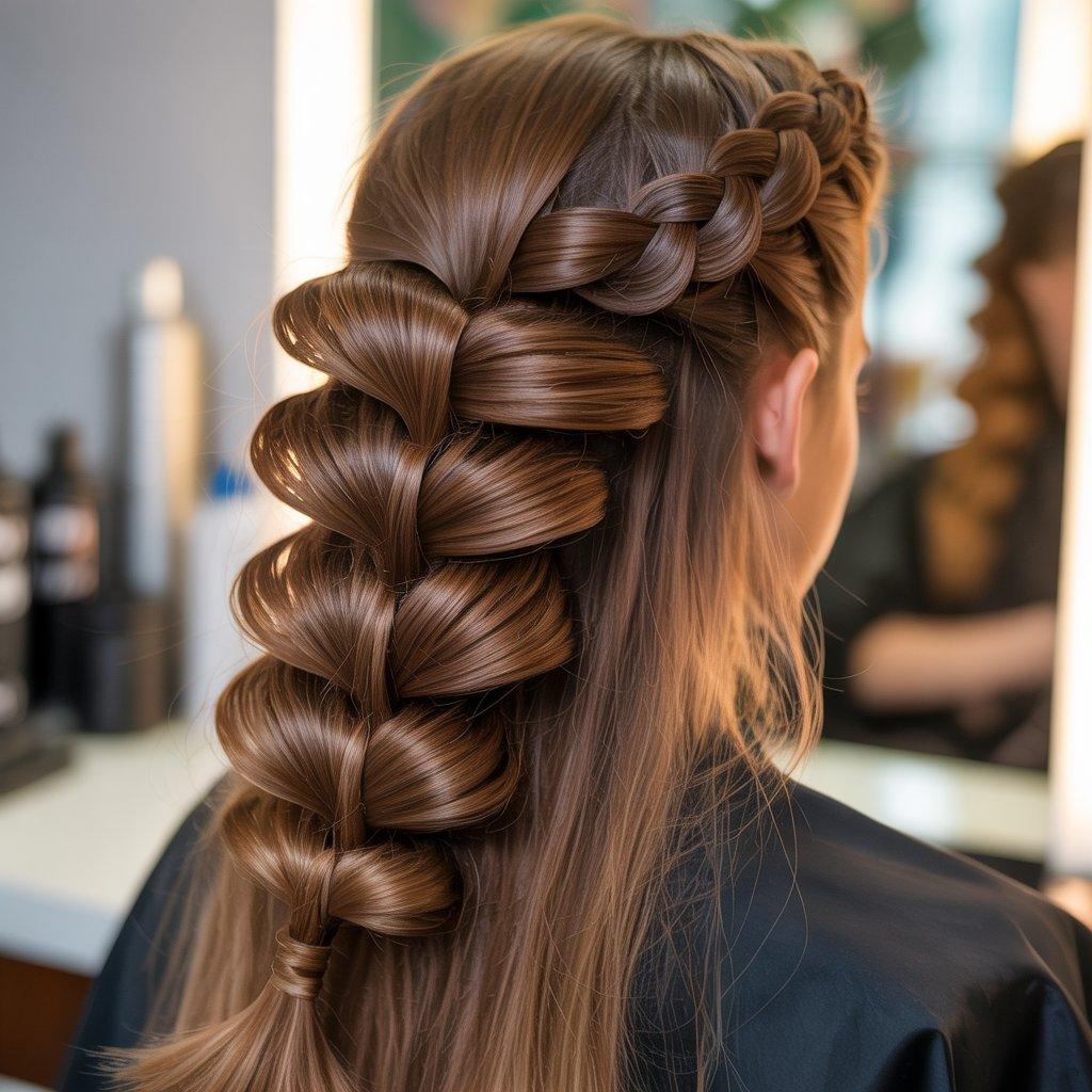 Ladder braids are a bit more advanced, but they’re worth learning. I usually braid two sections along the top and let strands weave into each other like a ladder pattern. It looks complicated, but once you practice, it’s doable at home or with a stylist. I like using it for casual days when I still want something eye-catching, or even dressed-up for events.