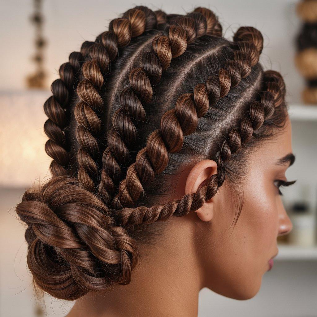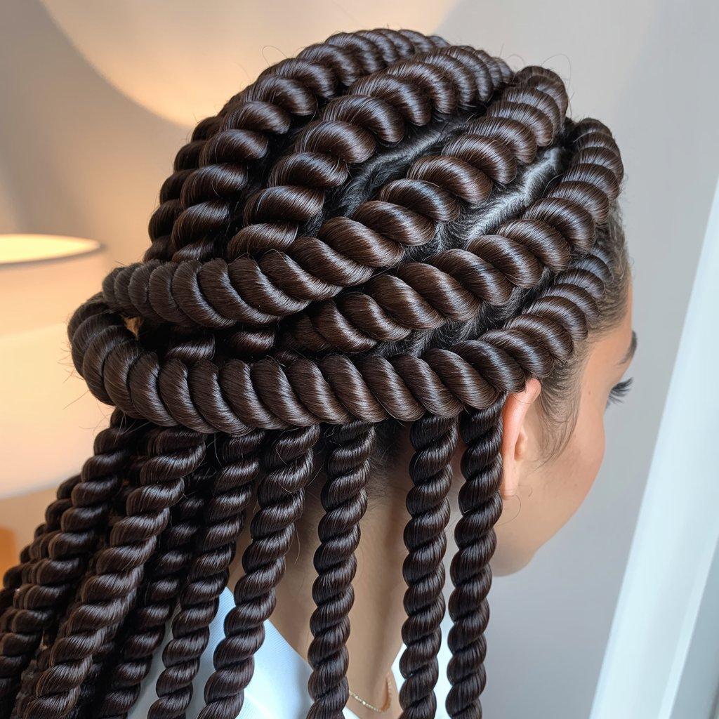Rope twists are simple but elegant. I divide the hair into two sections, twist each one, and then twist them around each other. They’re quick to do, low-maintenance, and work on both natural hair and extensions. I usually style them into a half-up, half-down look or a bun for a casual day.