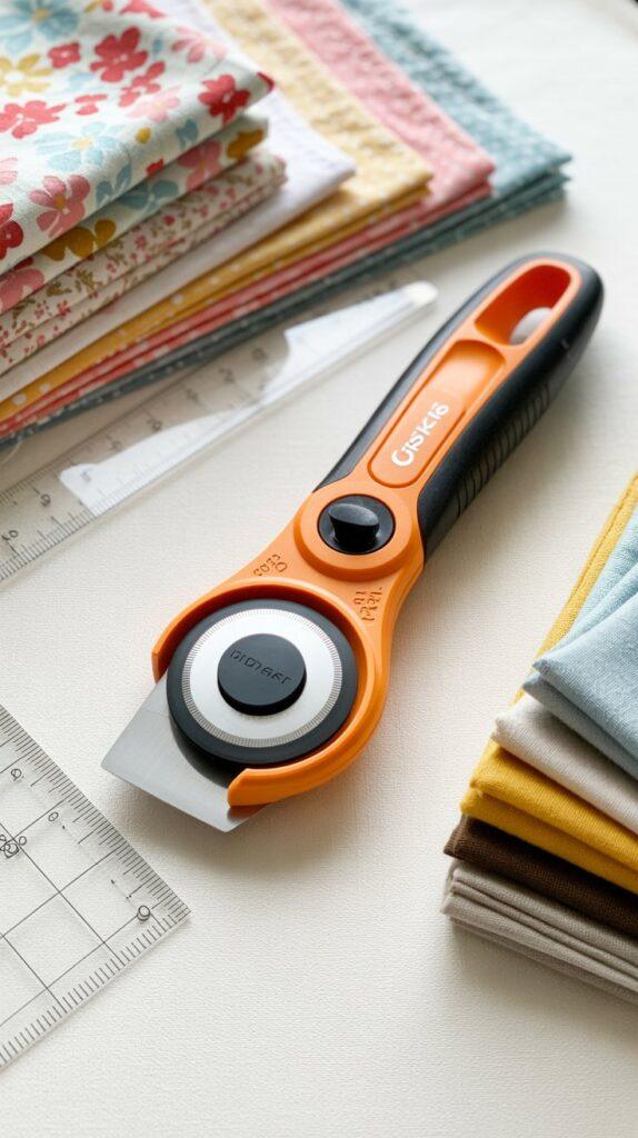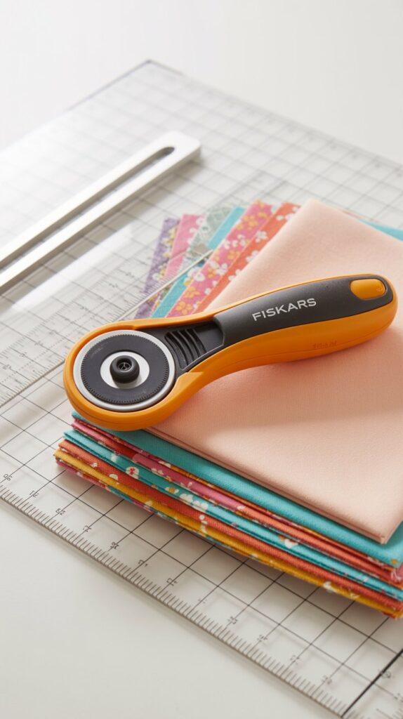 A rotary cutter makes the process much quicker and more precise. The Fiskars 45mm rotary cutter set is commonly used by quilters and sewing enthusiasts because it cuts through several layers of fabric in one pass.