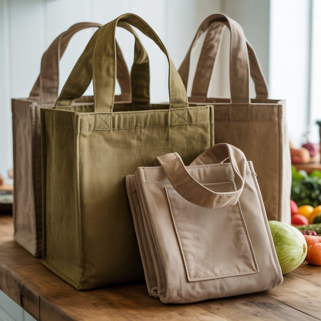 When I sew these, I focus on durability. Thick cotton canvas or heavy cotton works well because it can carry groceries without tearing. Strong handles and reinforced seams are important too, since people often load them with heavy items.