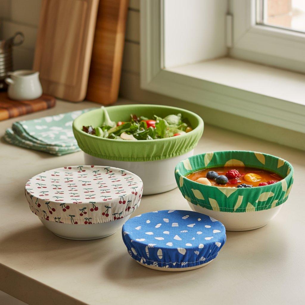Reusable bowl covers are another eco friendly sewing project that people find very practical. Instead of using plastic wrap or foil, these fabric covers stretch over bowls to keep food fresh in the fridge.