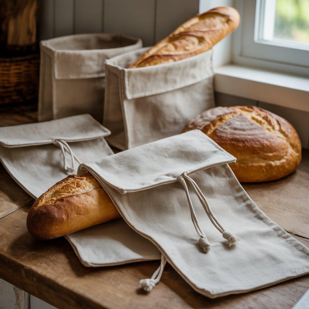 Reusable bread bags are becoming popular with people who bake their own bread or buy from local bakeries. Instead of using plastic bags, these fabric bags keep bread protected while allowing a little airflow.