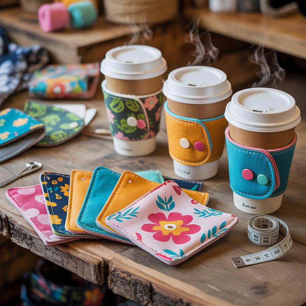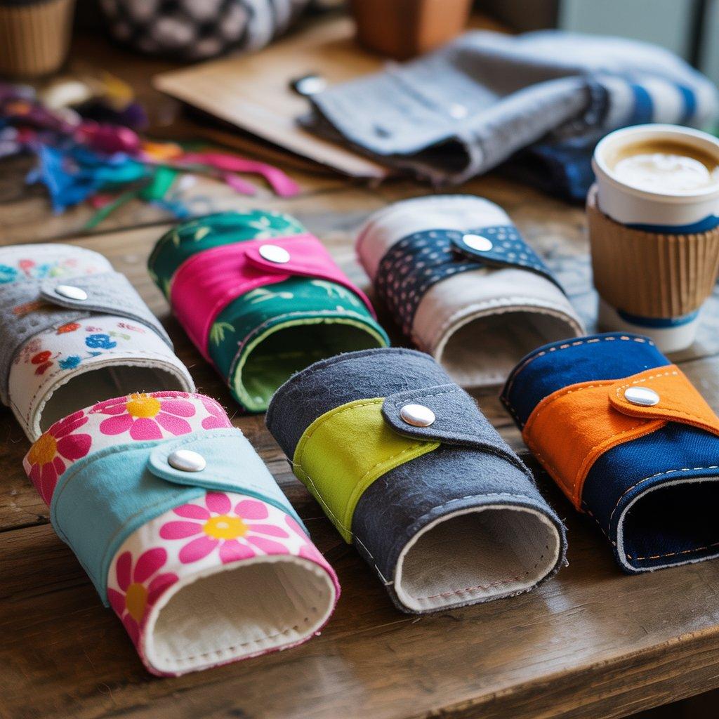 Reusable coffee cup sleeves are small projects, but they can be surprisingly popular. They wrap around takeaway coffee cups and protect your hands from heat while replacing disposable cardboard sleeves.