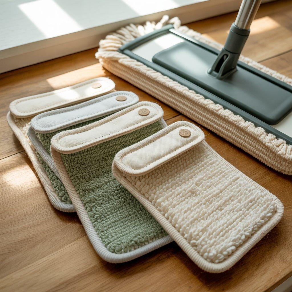 I usually make these using a combination of absorbent materials like cotton terry cloth or microfiber. The top layer can be cotton fabric with Velcro strips so the pad attaches easily to the mop head. The shape just needs to match the size of common flat mops, so once you create one pattern, it’s easy to repeat.