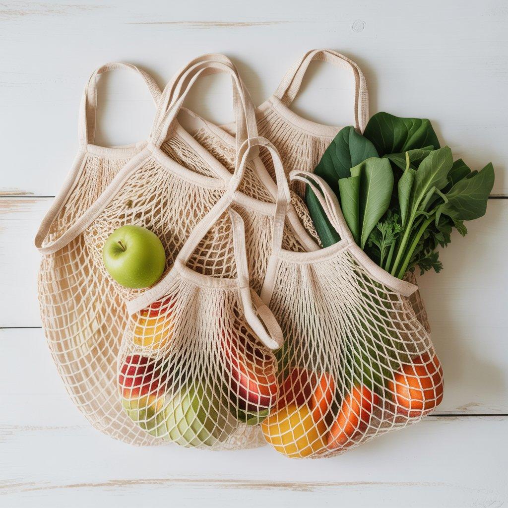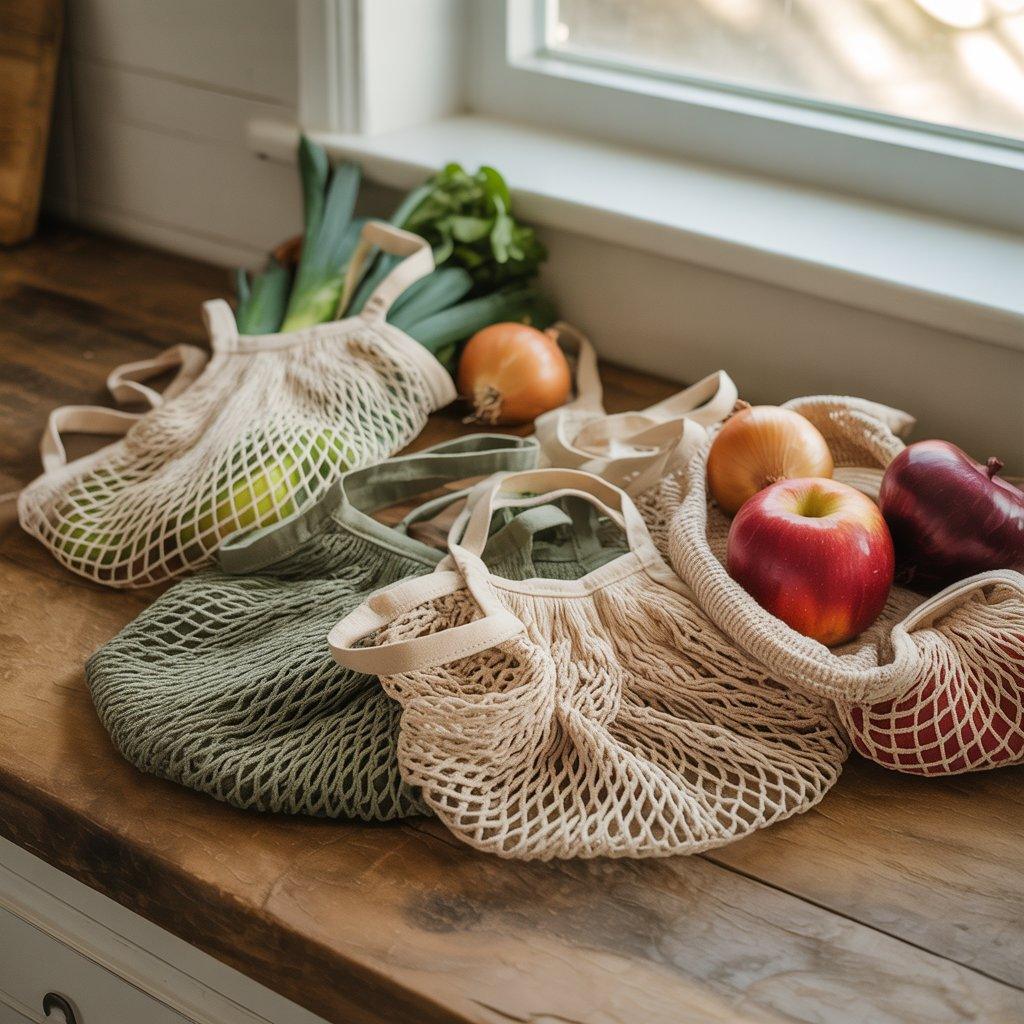 One of the easiest eco friendly sewing projects I started with was reusable produce bags. These are simple drawstring bags people use at the grocery store instead of plastic produce bags. They’re lightweight, washable, and easy to fold into a purse or shopping bag.