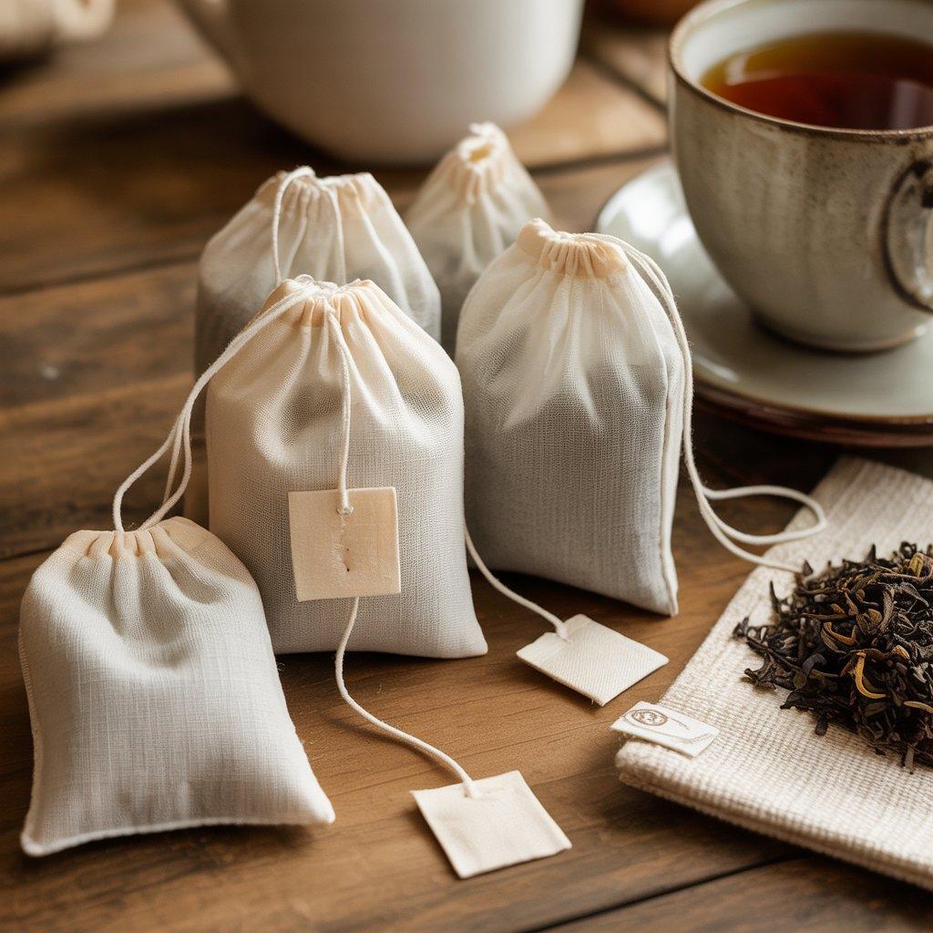 I usually make them using fine cotton muslin because it allows water to flow through easily while keeping the tea leaves inside. The design is simple: a small pouch with a drawstring or stitched top edge. Some people also attach a small fabric tag so it’s easy to pull the bag out of a cup or teapot.