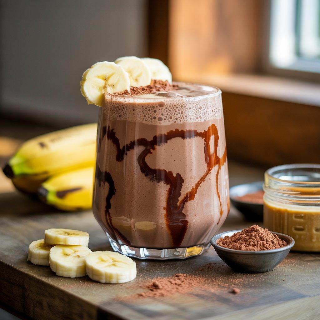 This is the smoothie I turn to when I feel mentally tired and unfocused. Bananas provide potassium and natural carbs, which support muscle and nerve function. Peanut butter adds protein and fat, helping the energy last longer. A small spoon of unsweetened cocoa powder adds depth and flavor without extra sugar.