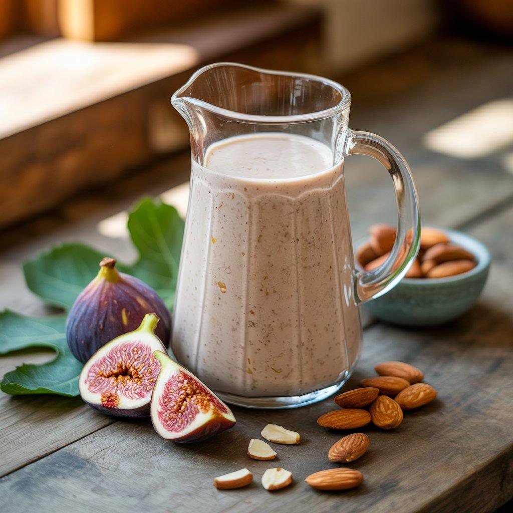 This smoothie became a favorite when I wanted something nourishing but not sugary. Figs provide fiber and natural sweetness, while almonds add protein and healthy fats. I soak dried figs first, then blend them with almond milk and a few whole almonds.