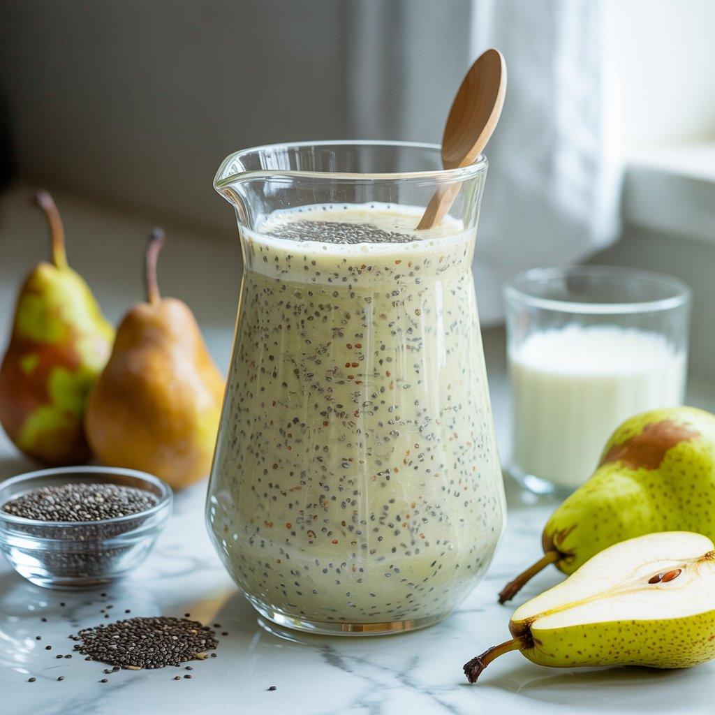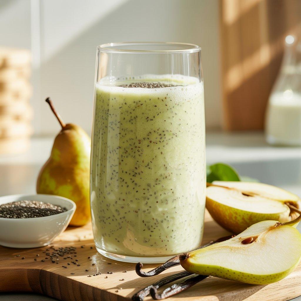 This smoothie worked well for me on days when energy felt low but digestion also felt off. Pears are gentle on the stomach and naturally hydrating, which helps when fatigue comes from dehydration or skipped meals. Chia seeds add fiber and healthy fats that slow digestion, keeping energy steady instead of sharp highs and lows. I usually blend ripe pear with milk or yogurt, a spoon of chia seeds, and a touch of vanilla. The texture is smooth and calming.
