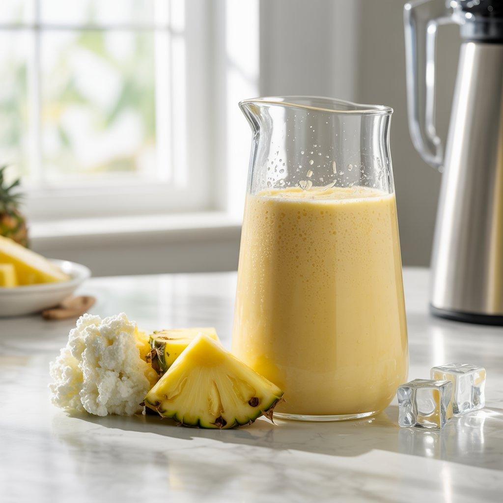 This one surprises people, but it works. Cottage cheese adds protein that supports muscle and steady energy, while pineapple brings freshness and natural sweetness. I blend cottage cheese with pineapple chunks, a little milk, and ice. The result is smooth and refreshing, not heavy.
