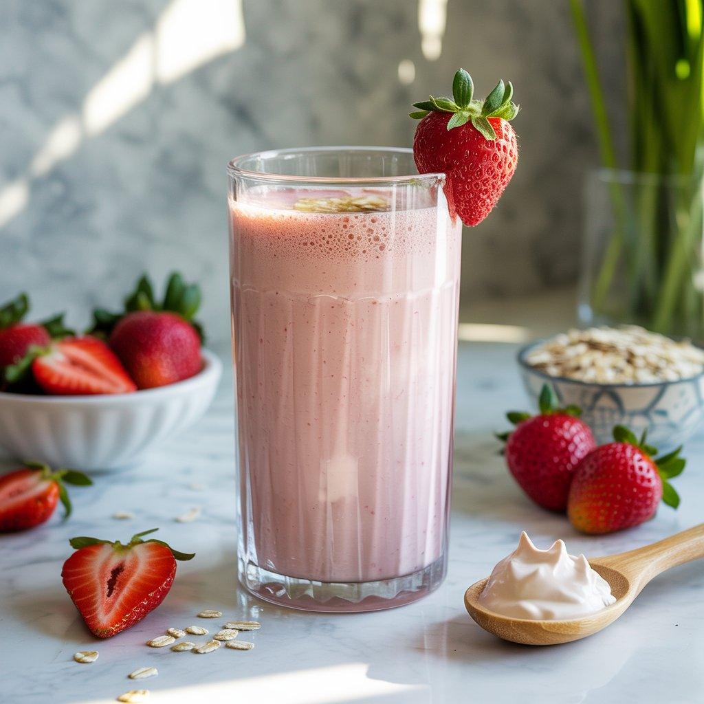 This is one of those smoothies I reach for when I want something light but still energizing. Strawberries provide natural sweetness and vitamin C, while oat milk adds gentle carbs that support steady energy. I blend strawberries with oat milk and a spoon of yogurt to add a bit of protein.