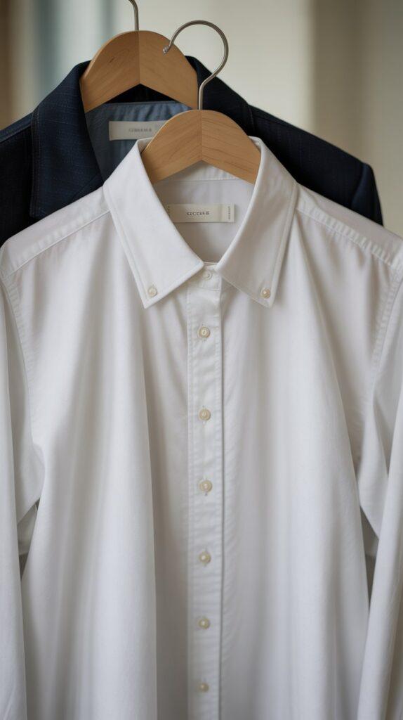 A white button-down shirt is a classic for a reason. It’s clean, crisp, and works for almost any occasion. Pair it with dark wash jeans that fit you well not too tight, not too loose and you’ve got an outfit that looks effortlessly expensive.