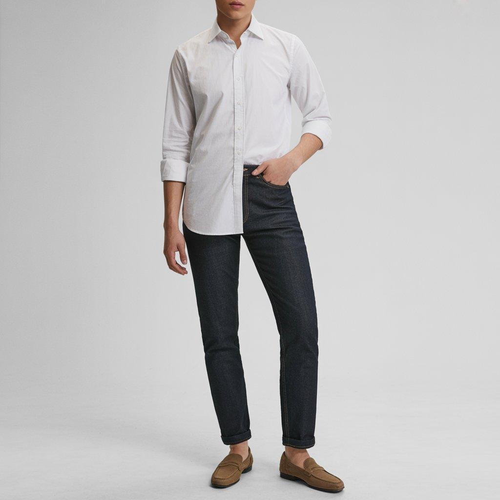 2. Crisp White Button-Down + Well-Fitted Jeans