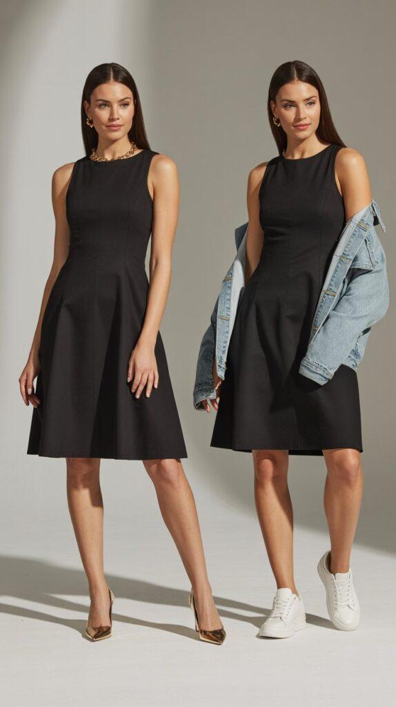 A line, wrap, or shift styles are forgiving and always look polished. You can dress it down with sneakers and a denim jacket, or dress it up with heels and a statement necklace. A quality black dress doesn’t need to cost a lot.
