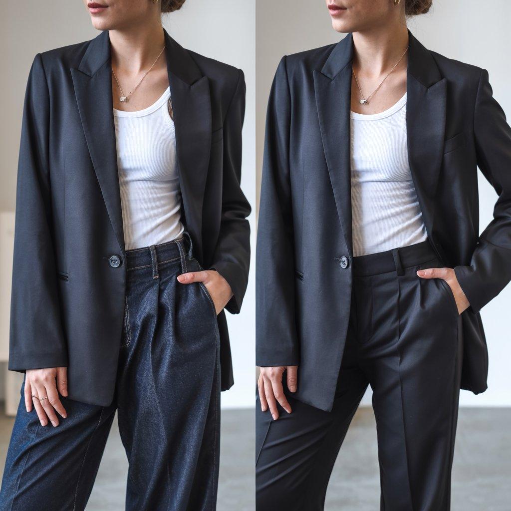 Make sure the shoulders sit right and the sleeves hit at your wrist bone. Pair it with jeans for a casual feel or with matching trousers for a suit-like effect. A good blazer elevates everything it touches.