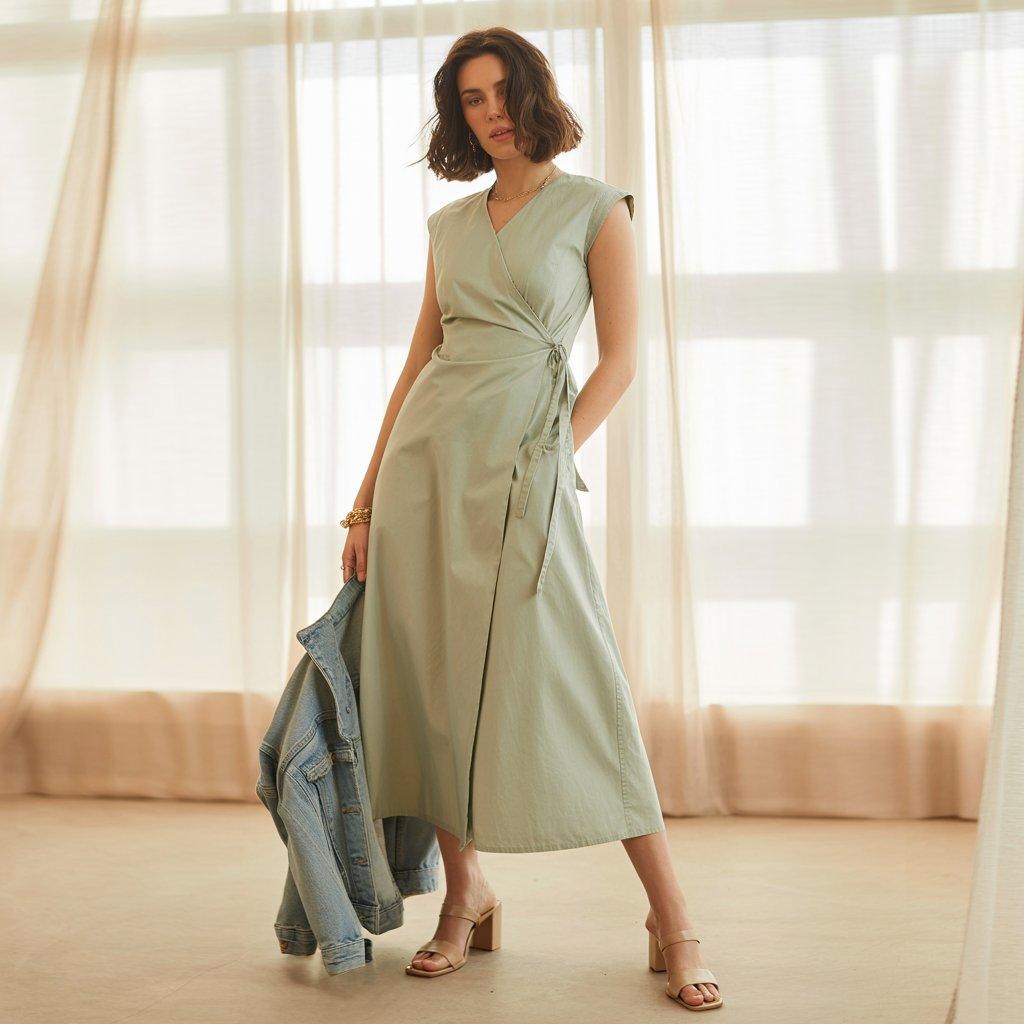 The key is choosing a cut that flatters your shape. A defined waist or wrap style usually works well on many body types. When the fit is right, you don’t need much else to make the outfit look complete.