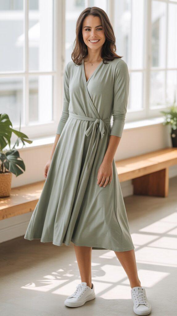 A good midi dress saves time because it’s one piece and you’re dressed. Choose breathable fabrics like cotton or soft jersey so it works for daily wear. A defined waist or wrap style usually flatters most body shapes and makes the outfit look balanced.