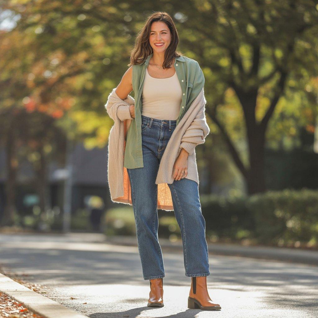 Some days start cool and end warm. That’s when layering helps. I like wearing a simple tank or fitted tee as a base. Over that, I’ll add a lightweight cardigan or an open button-down shirt.