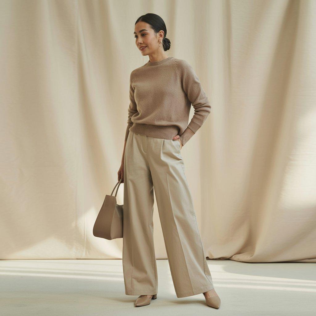 The reason this style works is balance. Loose trousers with a slightly fitted top, or vice versa. When you keep the colors soft and coordinated, even simple pieces feel thoughtful and styled.