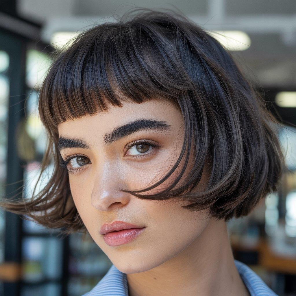 Baby bangs   short, choppy fringe that sits well above the brows   are back in a creative way. These bangs can add focus to your eyes and highlight facial features when paired with a bob or longer hair. While they’re shorter than most bangs, they can actually soften your look when styled gently.