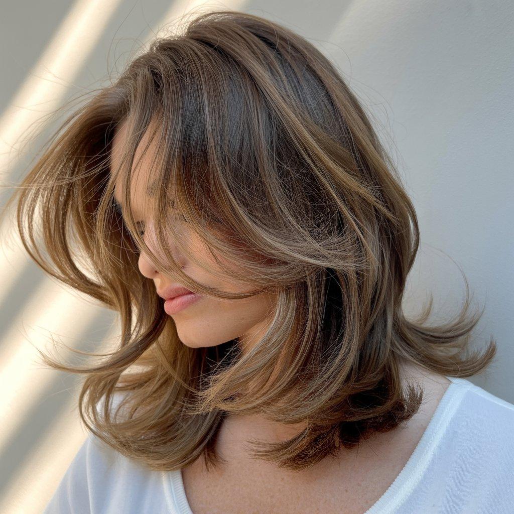 just smooth transitions that move when you walk. This cut shines on medium to long hair and feels like a fresh take on layered styles. If you want more shape and volume without constant styling, mention butterfly layers to your stylist. It’s a trend that looks natural but still feels styled.