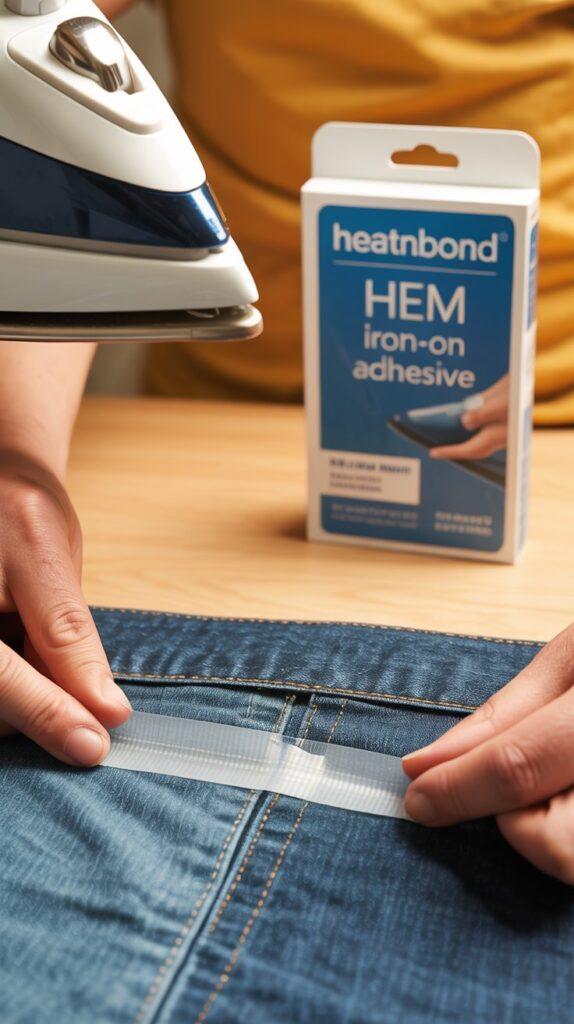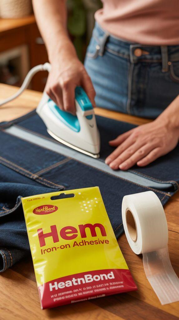 You just cut a piece, place it between the fabric layers, and press with an iron for about 10 seconds. The bond is strong like “holds up in the washing machine” strong. It works on pants, skirts, curtains, and even heavier fabrics like denim.