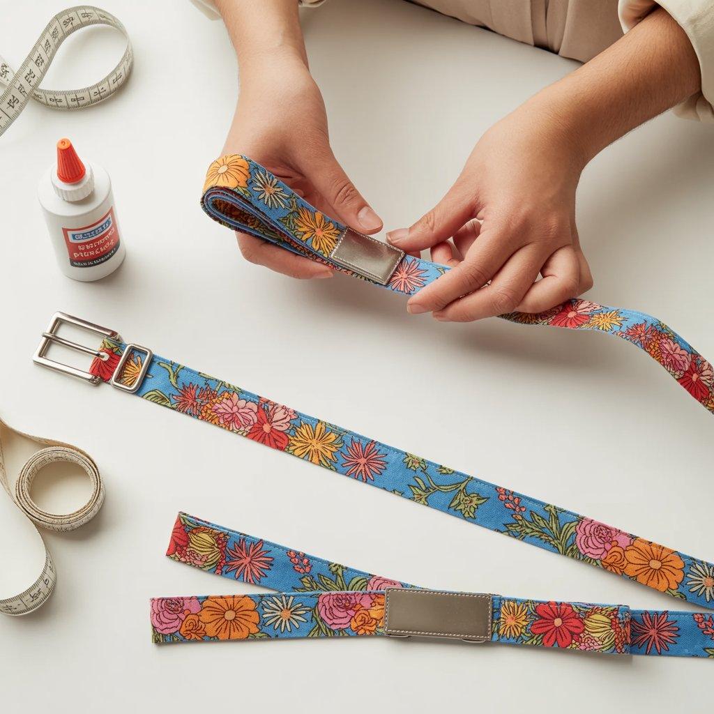 For a simpler version, skip the buckle and use two long fabric strips as ties. Loop them through small fabric tabs glued to each end of the belt.