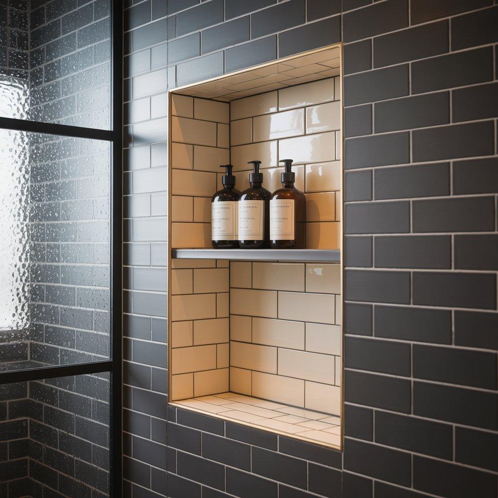 You can line it with a contrasting tile to make it subtle but interesting. It keeps the shower looking clean and less cluttered. This small detail makes everyday use more convenient.