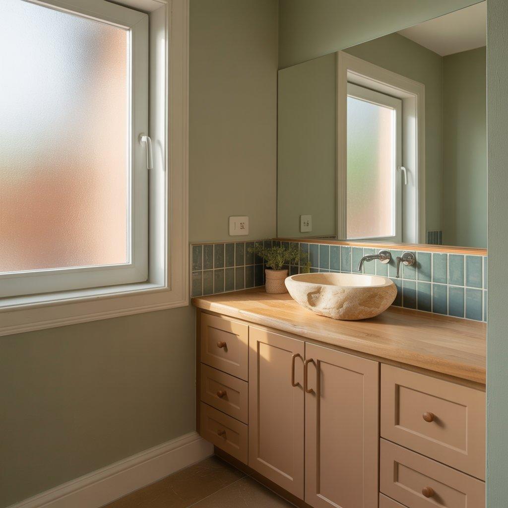 Sometimes the refresh comes from paint alone. Soft greens, warm beige, muted blues, or clay tones can completely change how the bathroom feels. I’ve painted walls behind vanities or even cabinetry for a subtle shift.