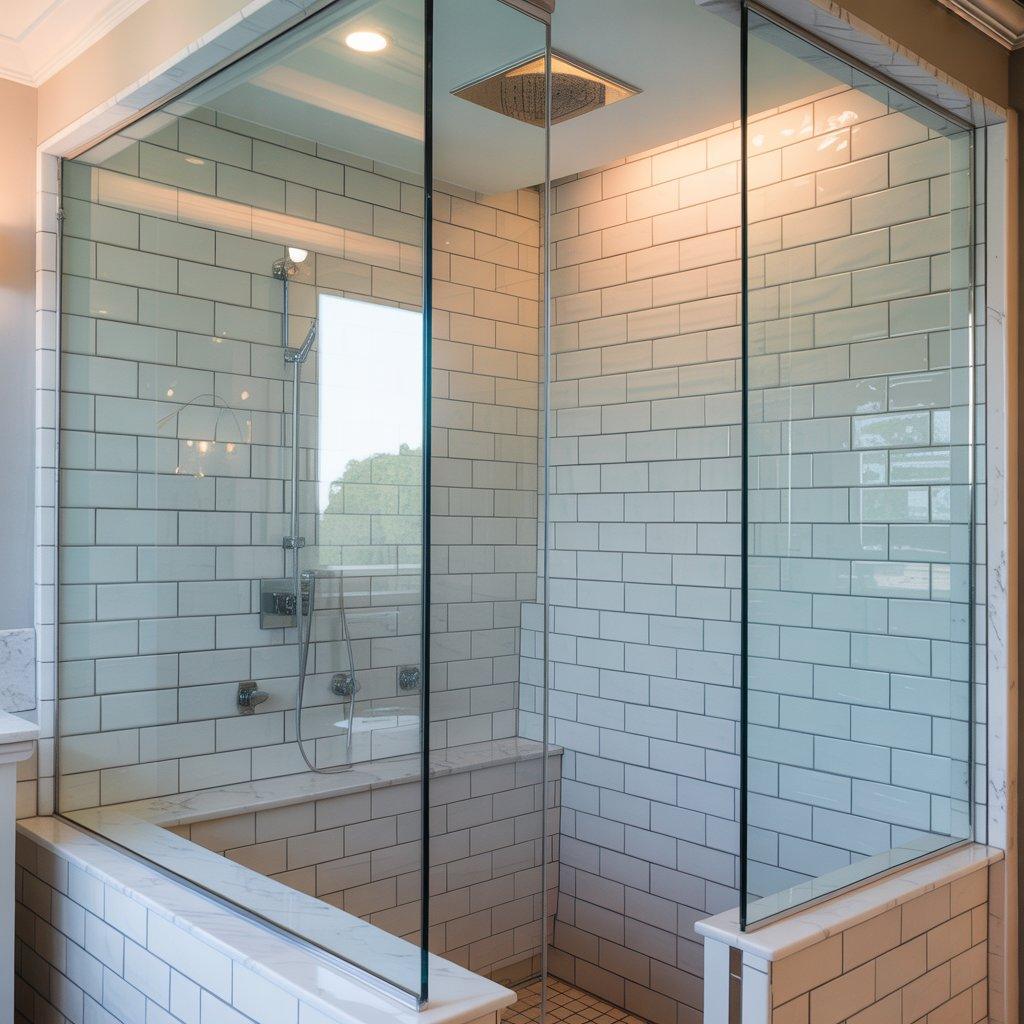 Switching from a bulky shower curtain to a clear glass panel can completely open up the room. I’ve seen small bathrooms look twice their size just from this one change. A walk-in shower with minimal framing keeps the layout clean and modern.