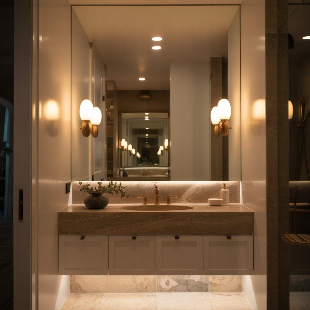 One overhead light is rarely enough. I prefer layering lighting with wall sconces beside the mirror and soft ambient lighting above.