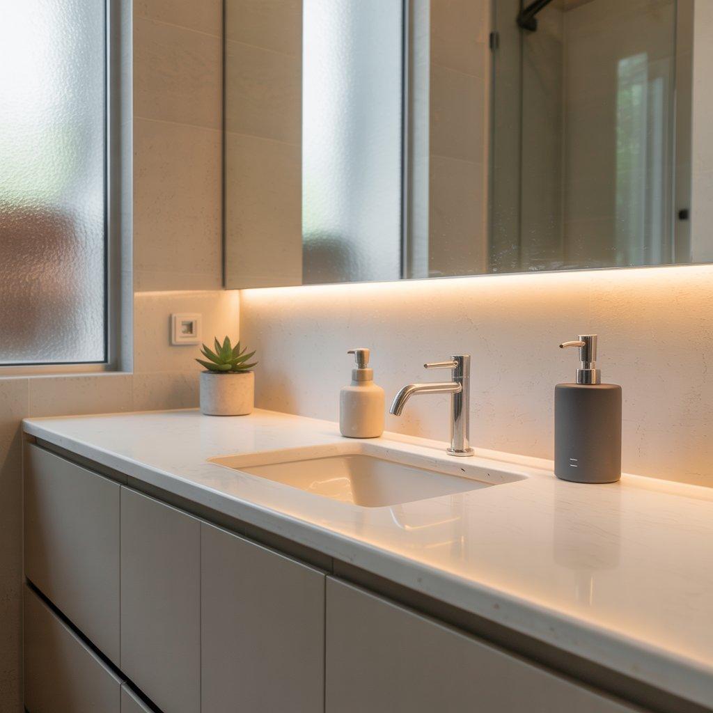 Good lighting makes daily routines easier and improves the overall design. Warm white bulbs usually feel more comfortable than harsh cool tones. Updating lighting often refreshes a bathroom more than people expect.