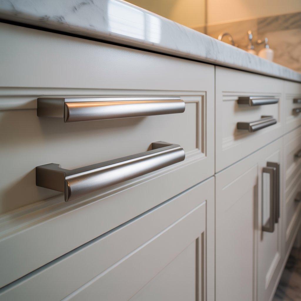 This works especially well if the cabinets are still in good shape but look outdated. Small hardware changes can modernize the entire bathroom without replacing major fixtures.