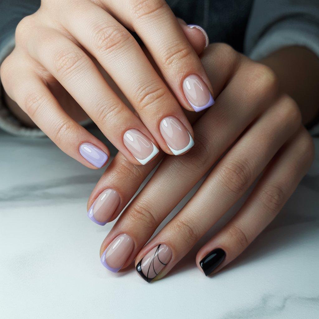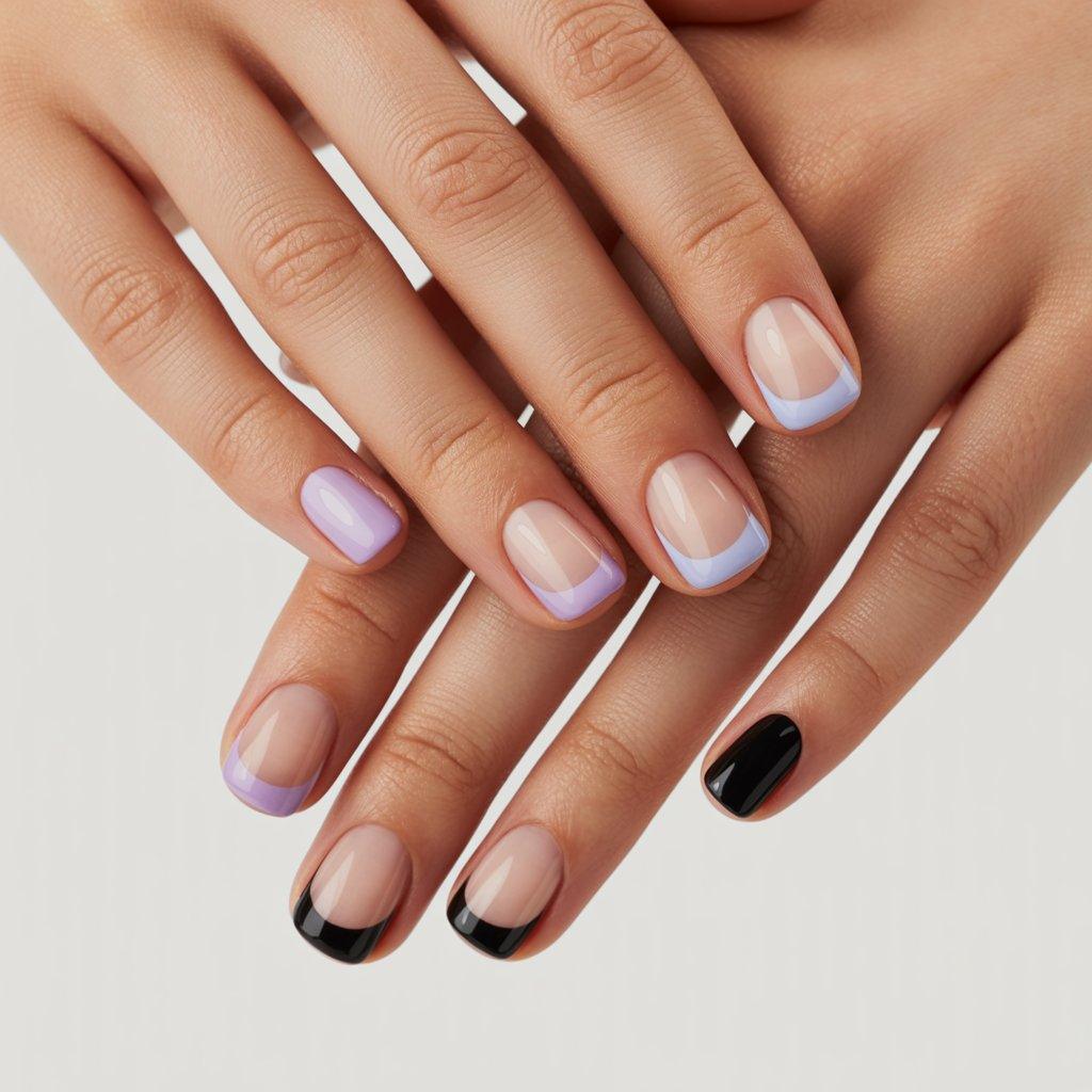 The French manicure your mom wore in the 90s is not the same one people want now. The white tip on pink nail is fine but it’s basic. What’s happening now is people playing with the whole idea. Colored tips are huge – think soft blue or lavender instead of white. Some are doing black tips with a clear base which looks really sharp and kind of edgy without being over the top.