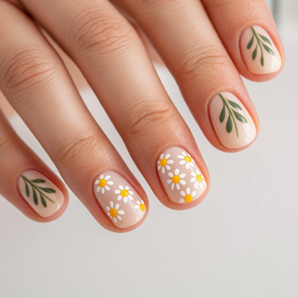 Floral nails sound complicated but they don’t have to be. You’re not painting a whole garden. Think tiny daisies. Three or four little dots in a circle with a yellow dot in the middle. That’s a flower and it takes two minutes. Put a couple of those on a neutral base and you’ve got a spring manicure without losing your mind with a tiny brush.