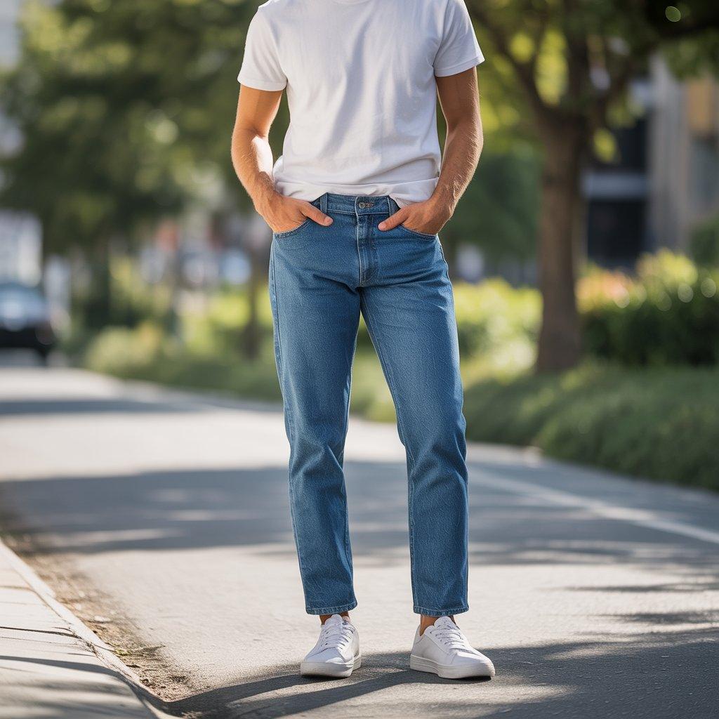 A classic white T-shirt and denim jeans combo never goes out of style. Pick a tee that fits just right not too tight, not baggy. Pair it with your favorite blue jeans. They can be straight leg, relaxed, or slightly cropped depending on what you like and what feels comfortable. White sneakers keep this look fresh and easygoing.