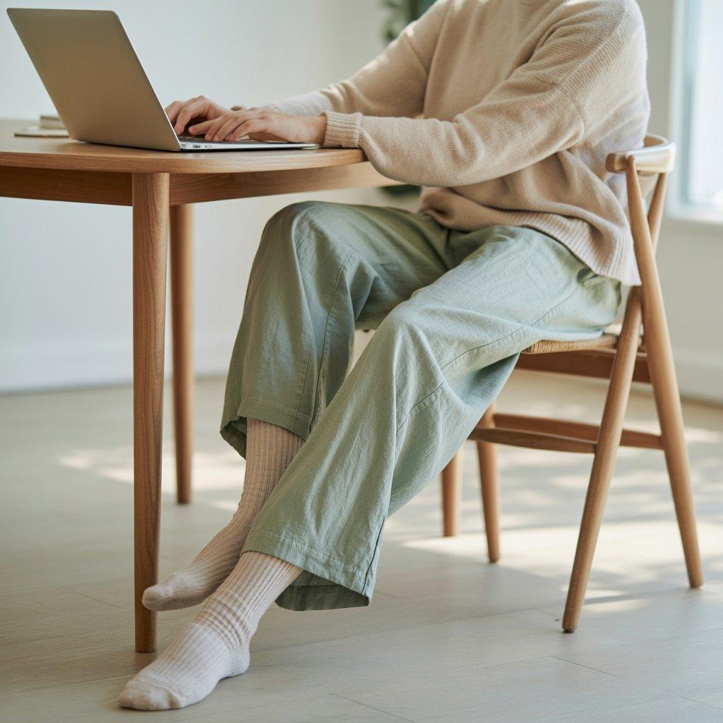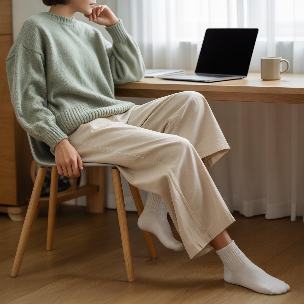 Working from home doesn’t mean staying in pajamas all day. A soft knit top paired with loose, breathable pants helps you feel ready for the day without sacrificing comfort. The knit top looks presentable enough for video calls, while the loose pants keep things relaxed.